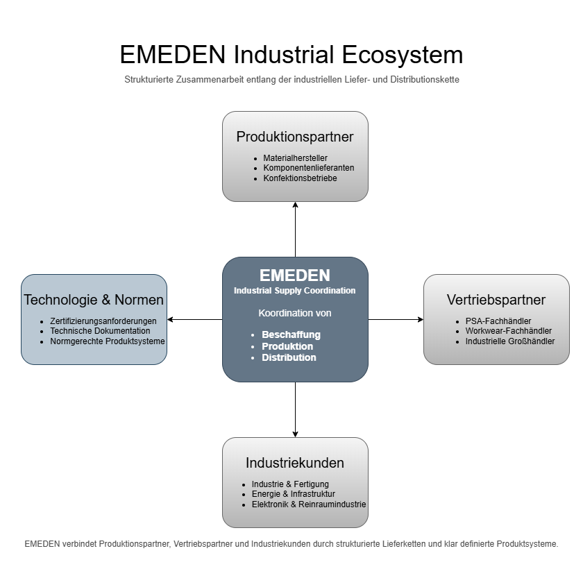 EMEDEN verbindet Produktionsnetzwerke mit professionellen Vertriebspartnern für industrielle Arbeits- und Schutzlösungen..